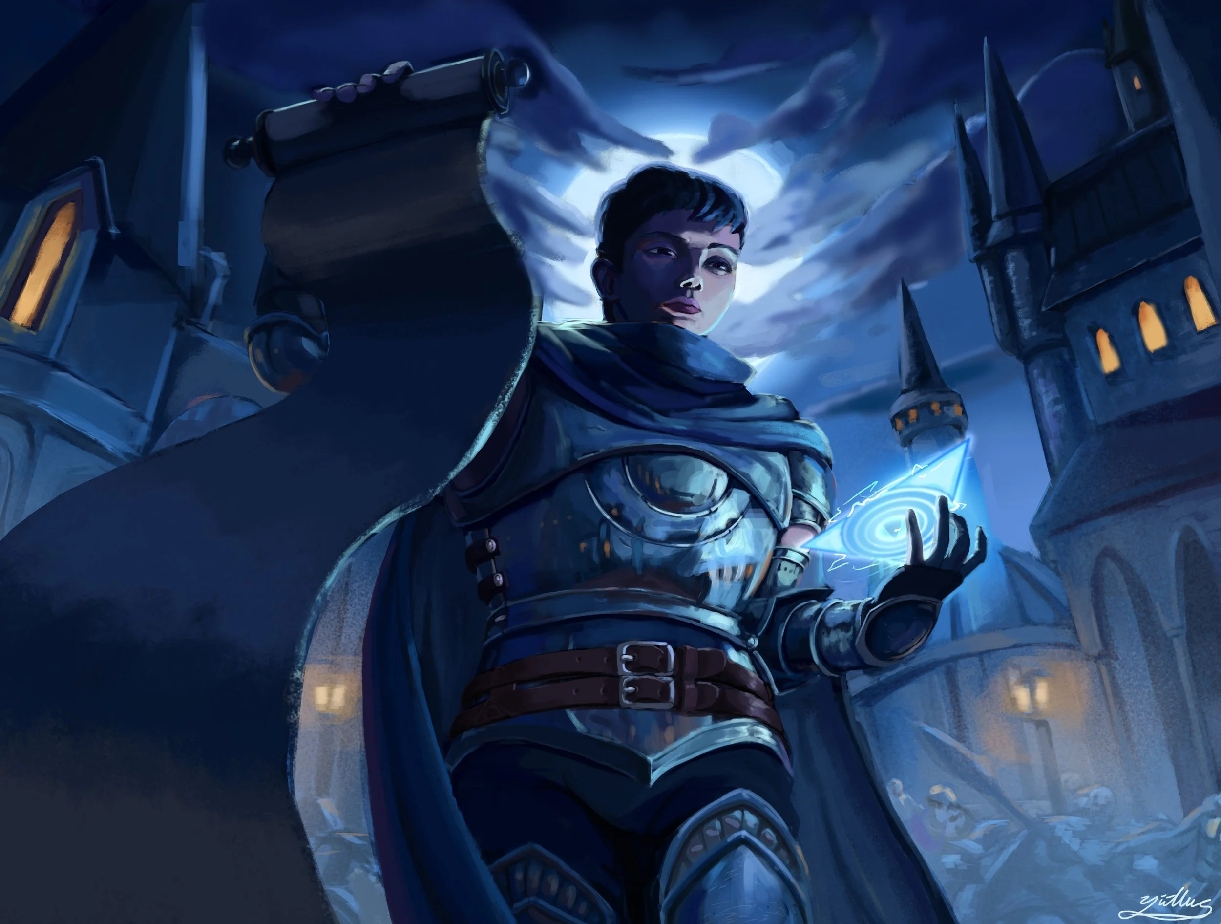 A fan-piece of Lavinia the Tenth from Magic: The Gathering done digitally with as a mentorship through CG Master Academy. I really appreciate how Lavinia is constantly shown to be both capable and way in over her head, so I wanted to show her at the height of her power now that she’s de facto Guildmaster of the Azorius.